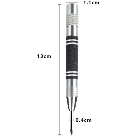【Spécification】:Ce poinçon central automatique mesure 13 cm de long et 1,1 cm de diamètre.L’ensemble comprend deux poinçons centraux automatiques et deux poinçons de rechange.L’apparence est petite et facile à transporter.