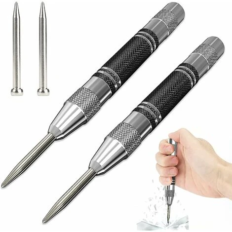 【Spécifications】Le grain de métal mesure 128 mm (5,04 pouces) de long et 11 mm (0,49 pouce) de diamètre. L’ensemble contient deux poinçons centraux automatiques et deux poinçons de remplacement. La forme extérieure est compacte et facile à transporter