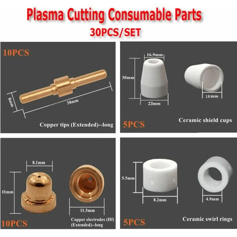 30 pièces pour machine de découpe plasma berlan bps40, également pour cut30, cut40, cut50, ct416, ct520.