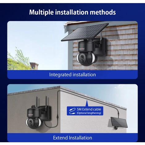 5. La camera adopte une conception distincte de panneau solaire et de camera. equipe d’une rallonge de 5m. Le panneau solaire peut etre installe a l’exterieur, la camera peut etre installee a l’interieur, ou la camera peut etre installee dans un endroit ou la lumiere du soleil est insuffisante grace a une rallonge, et la camera peut etre alimentee par la lumiere du soleil.