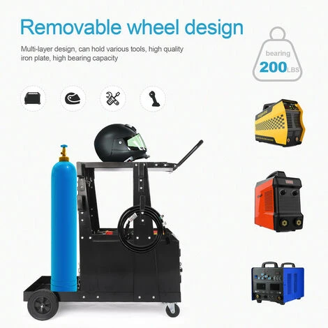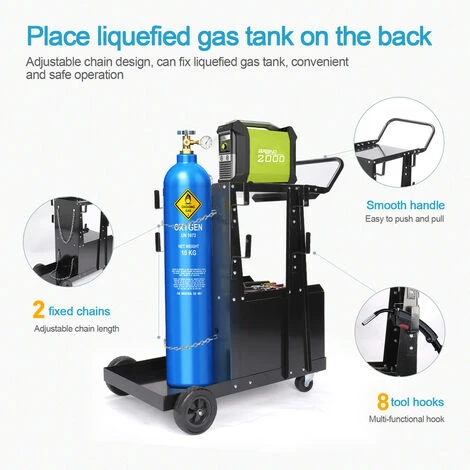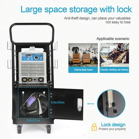 Le chariot de soudage mobile avec poignée est un choix idéal pour transporter vos outils d’atelier, tels que les postes de soudage MIG, les onduleurs et les accessoires de soudage