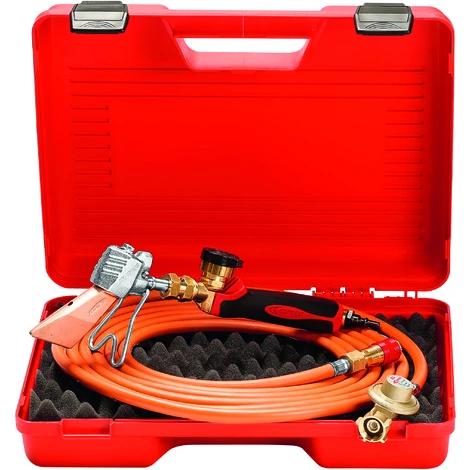 Outre les deux références déjà citées, cette valisette fer de couvreur est fournie avec un détendeur 2 bar Réf. 682 et son tuyau de 4,75 mètres Réf. 963/5 qui en font une offre particulièrement bien équilibrée pour qui recherche un outillage couverture d’un excellent rapport qualité prix.