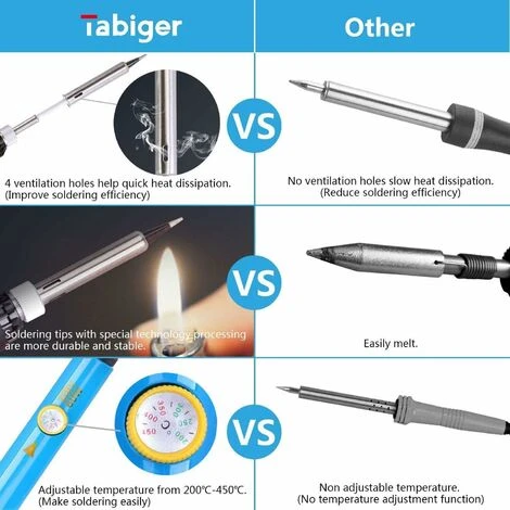 projets. - 【APPLICATION LARGE】 Les ensembles de fer à souder sont la meilleure idée cadeau pour le bricoleur, diverses utilisations réparées de l’électronique et des panneaux de particules, soudage, bijoux, guitare, montres, câblage, appareil mobile, matériel informatique, petit travail électronique, condensateurs TV ou