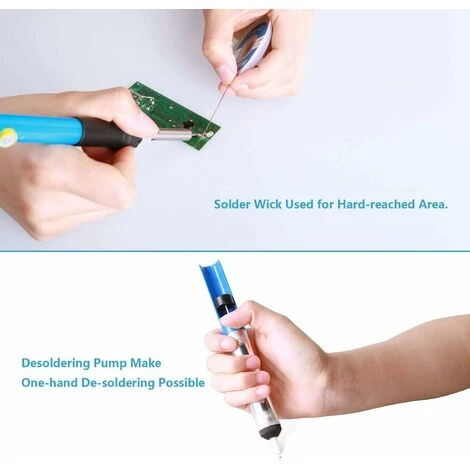 200-450℃. Grâce à notre conception améliorée de tuyaux en acier, le fer à souder est plus efficace dans une meilleure dissipation de la chaleur. - 【POMPE À DESSOUDER À MÈCHE À SOUDER DURABLE】 – La mèche à souder mesure 2,0 mm de large, 1,5 m de long, 0,4 oz de poids et est un flux de résidus facile à nettoyer, en particulier dans les zones difficiles d’accès. La pompe à dessouder (ventouse à souder) est un tube à vide haute pression avec de l’aluminium