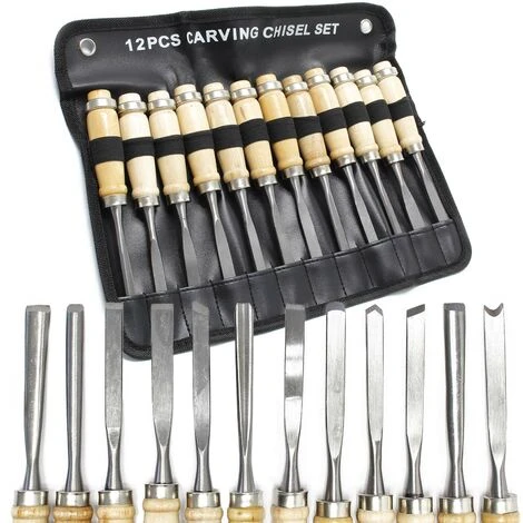 Kit de fers à sculpter 12 pcs. pour sculpture de bois avec fer plat & gouge