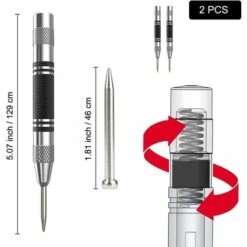 3 Pcs Poinçon à Tracer, Pointeau A Frapper Center Punch En Acier Avec Poignée – 1.5/2/3, Noir –