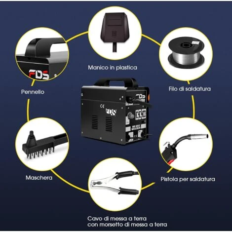 - ★ACCESSOIRES★ Pour vous permet d’optimiser le travail, en plus du poste à souder, votre produit est livré aussi avec une torche mig avec câble, une pince avec câble, un masque de protection, une brosse et une bobine de fil Ø 0,9 mm-500 g.