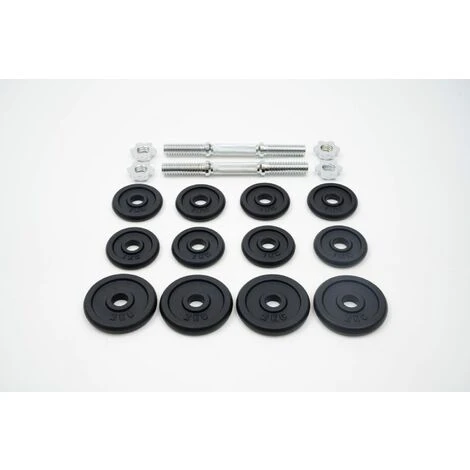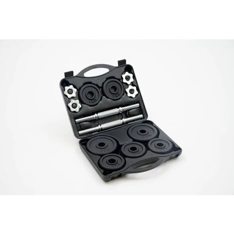 Ce set barre + haltère de 20 KG tout inclus est composé de :