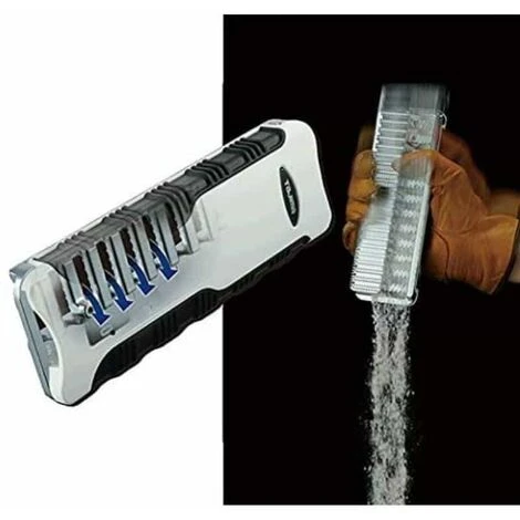 Rape pour cloisons sèches Tetra Teeth anti-bourre et double action. Trois types de rapes sur la semelle. Récupération de la poussière dans la poignée.