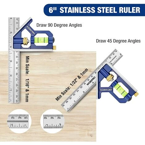 【Fonction Multiple】L’équerre de bricolage de WORKPRO est appropriée pour mesurer, marquer, etc., pour vous aider à mesurer avec précision. Il est largement utilisé dans la maison, la mesure d’ingénierie, la construction de logement